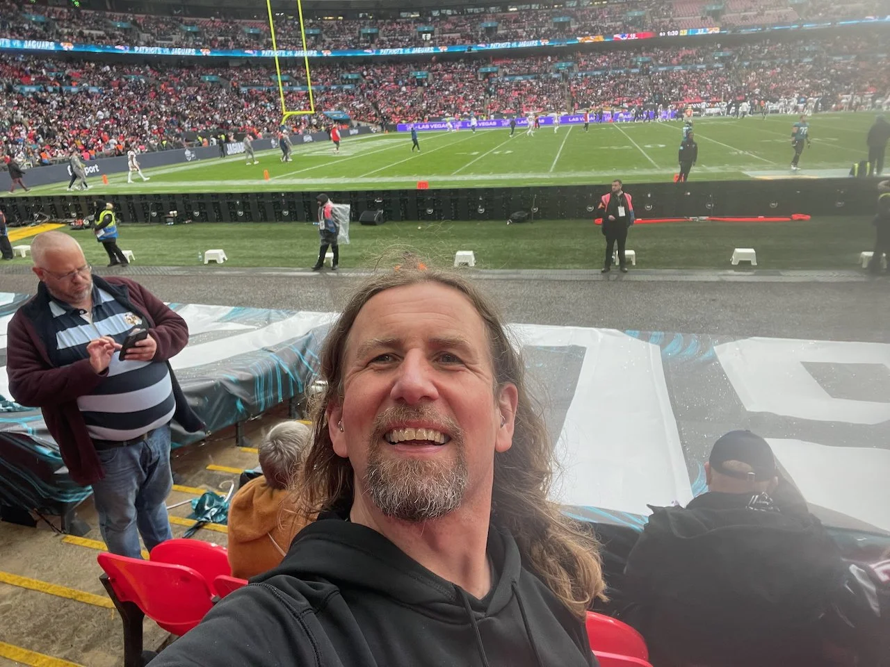 Additionally, in these busy times; especially with the work I do, I like to look after myself and I’m grateful for the flexibility my businesses have given to me. I’m a runner – I run at least three marathons a year; I ride motorcycles (in particular, my 1990 Yamaha FJ1200) and I’m also a PADI Open Water qualified scuba diver. I’m massively interested in American Football and have been lucky for the last couple of years to work with the Jacksonville Jaguars NFL team that play one of their home games at Wembley every year. Last year, I was lucky enough to get tickets for the game thanks to my awesome design client.
